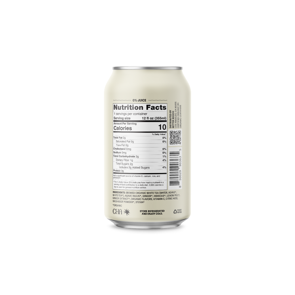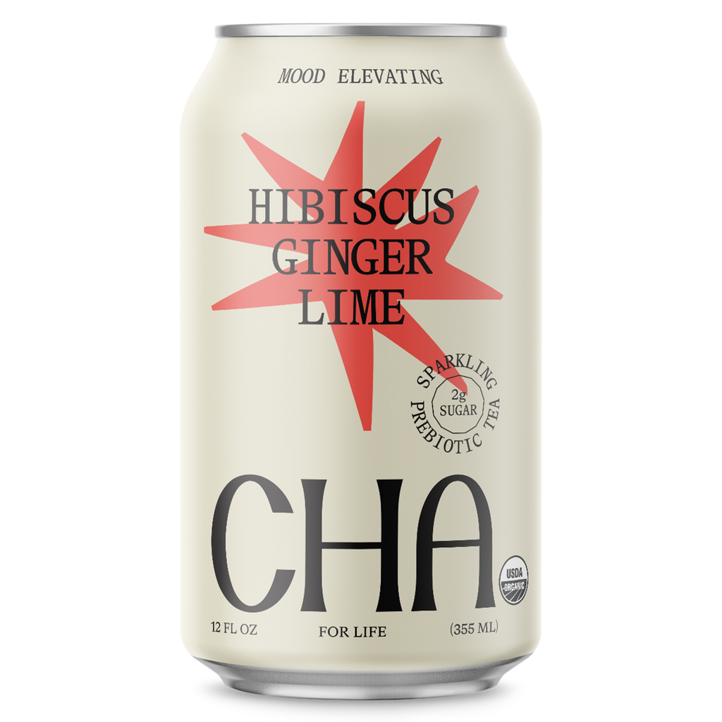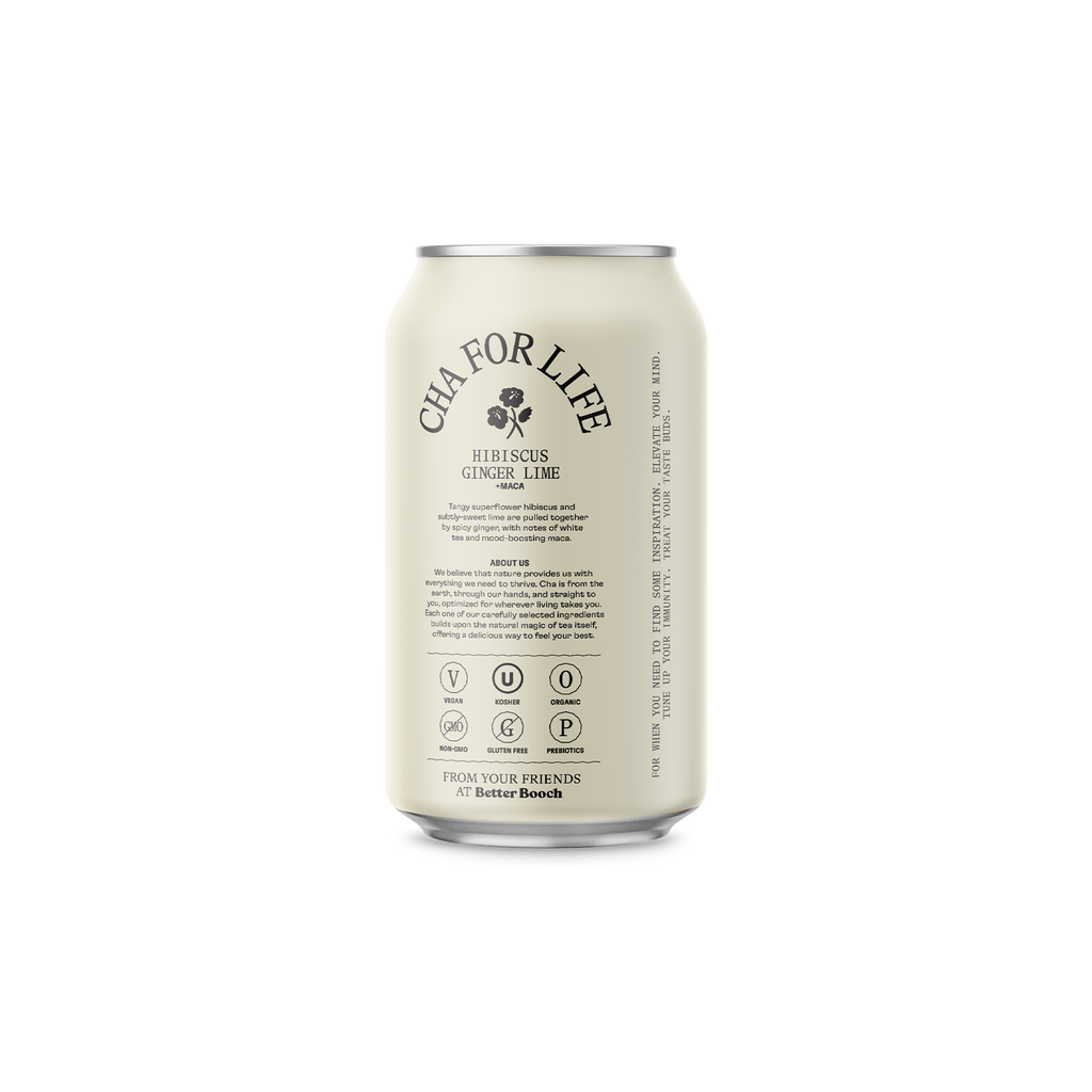 Prebiotic sparkling iced tea with tangy superflower hibiscus and subtly-sweet lime are pulled together by spicy ginger, with notes of white tea and mood-boosting maca.